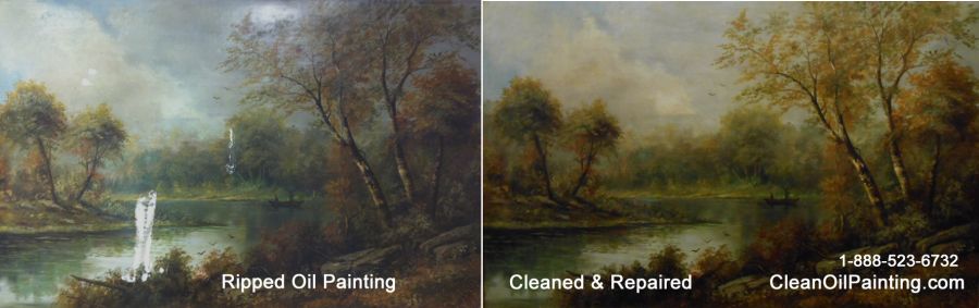 Rips, holes and scratches were repaired to restore this antique oil painting.